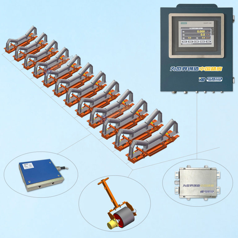 YB-GZK-NT/12高精度智控電子皮帶秤采用12組全懸浮式稱重橋架,無耳軸支點和可移動部件,不受非垂直力以外的各種側(cè)向力和水平力干擾(包括托輥摩擦力、皮帶及物料運行的水平分力),對稱重需要測量的垂直力量感應(yīng)更迅速。